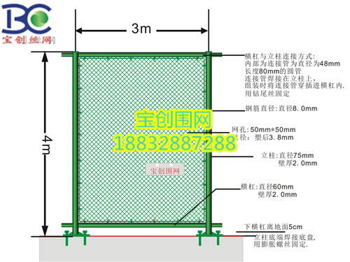 立柱、横杠采用原色管或镀锌管,表面采用热浸塑工艺处理,立柱与横管之间采用套管连接;围网材质采用优质镀锌低碳钢丝,表面采用环保材料PE原生料包塑