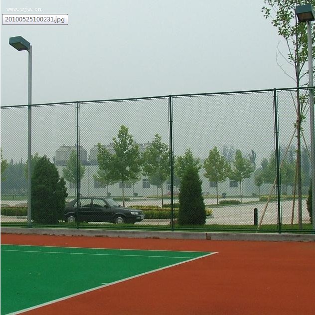 3、体育场围网最好采用包塑的铁丝网,网眼最大面积应为50毫米X50毫米(45毫米X45毫米),围网的固定零件不能有锐利的边沿。
